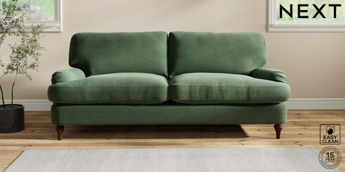 6.12.1 Buy Sadie Deep Relaxed Sit 3 Seater Sofa Fine Chenille Easy Clean Mid Khaki Green High Slim Turned - Dark Brown from the Laura Ashley online shop Click here to use our website with more accessibility support, for example screen readers