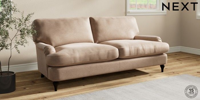 7.0.3 Buy Sadie Deep Relaxed Sit 3 Seater Sofa Luxe Chenille Mid Natural High Slim Turned - Dark from the Laura Ashley online shop Click here to use our website with more accessibility support, for example screen readers