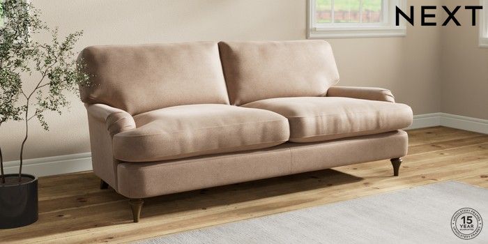 7.0.3 Buy Sadie Deep Relaxed Sit 3 Seater Sofa Luxe Chenille Mid Natural High Slim Turned - Mid from the Laura Ashley online shop Click here to use our website with more accessibility support, for example screen readers