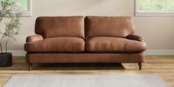 6.12.1 Buy Sadie Deep Relaxed Sit 3 Seater Sofa Monza Faux Leather Easy Clean Chestnut Brown High Slim Turned - Mid from the Laura Ashley online shop Click here to use our website with more accessibility support, for example screen readers