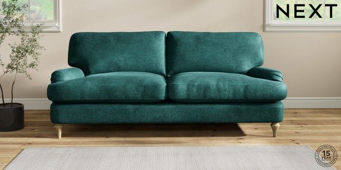 6.12.1 Buy Sadie Deep Relaxed Sit 3 Seater Sofa Plush Chenille Dark Teal Green High Slim Turned - Light from the Laura Ashley online shop Click here to use our website with more accessibility support, for example screen readers