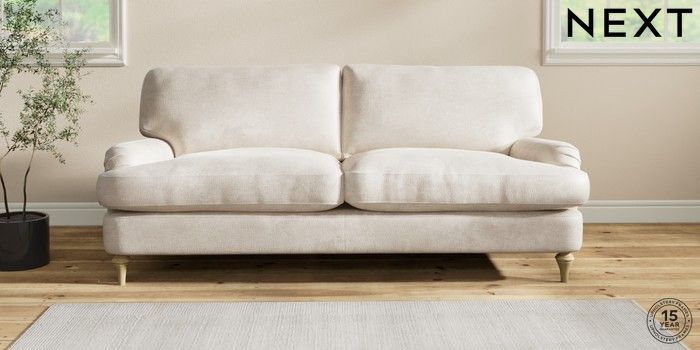 6.12.1 Buy Sadie Deep Relaxed Sit 3 Seater Sofa Plush Chenille Oyster High Slim Turned - Light from the Laura Ashley online shop Click here to use our website with more accessibility support, for example screen readers