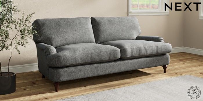 7.0.3 Buy Sadie Deep Relaxed Sit 3 Seater Sofa Tweedy Chenille Dark Grey High Slim Turned - Dark Brown from the Laura Ashley online shop Click here to use our website with more accessibility support, for example screen readers