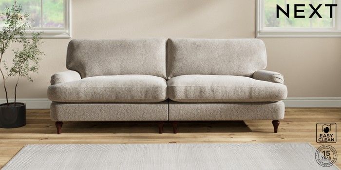 6.12.1 Buy Sadie Deep Relaxed Sit 4 Seater Sofa Chunky Boucle Easy Clean Dove High Slim Turned - Dark Brown from the Laura Ashley online shop Click here to use our website with more accessibility support, for example screen readers