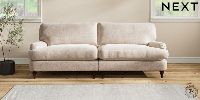6.12.1 Buy Sadie Deep Relaxed Sit 4 Seater Sofa Cotswold Chenille Light Natural High Slim Turned - Dark Brown from the Laura Ashley online shop Click here to use our website with more accessibility support, for example screen readers