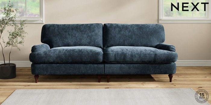 6.12.1 Buy Sadie Deep Relaxed Sit 4 Seater Sofa Distressed Velour Midnight Blue High Slim Turned - Dark Brown from the Laura Ashley online shop Click here to use our website with more accessibility support, for example screen readers