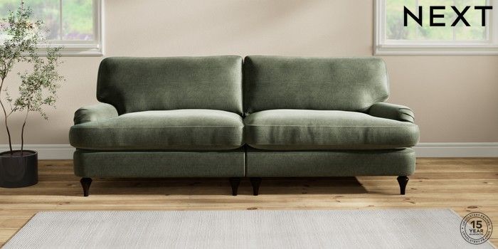 6.12.1 Buy Sadie Deep Relaxed Sit 4 Seater Sofa Luxe Chenille Mid Green High Slim Turned - Dark from the Laura Ashley online shop Click here to use our website with more accessibility support, for example screen readers