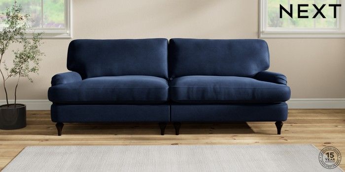 6.12.1 Buy Sadie Deep Relaxed Sit 4 Seater Sofa Luxe Chenille Navy Blue High Slim Turned - Dark from the Laura Ashley online shop Click here to use our website with more accessibility support, for example screen readers
