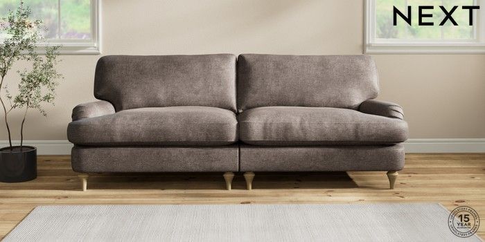 6.12.1 Buy Sadie Deep Relaxed Sit 4 Seater Sofa Plush Chenille Mink Brown High Slim Turned - Light from the Laura Ashley online shop Click here to use our website with more accessibility support, for example screen readers