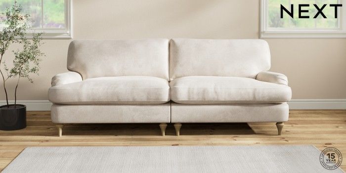 6.12.1 Buy Sadie Deep Relaxed Sit 4 Seater Sofa Plush Chenille Oyster High Slim Turned - Light from the Laura Ashley online shop Click here to use our website with more accessibility support, for example screen readers