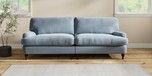 6.12.1 Buy Sadie Deep Relaxed Sit 4 Seater Sofa Relaxed Linen Look Mid Blue High Slim Turned - Dark Brown from the Laura Ashley online shop Click here to use our website with more accessibility support, for example screen readers