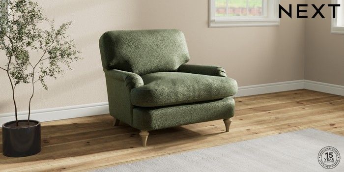 7.0.3 Buy Sadie Deep Relaxed Sit Armchair Boucle Chenille Dark Moss Green High Slim Turned - Light from the Laura Ashley online shop Click here to use our website with more accessibility support, for example screen readers