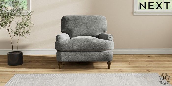 6.12.1 Buy Sadie Deep Relaxed Sit Armchair Chunky Chenille Dark Grey High Slim Turned - Mid from the Laura Ashley online shop Click here to use our website with more accessibility support, for example screen readers