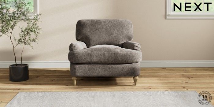 6.12.1 Buy Sadie Deep Relaxed Sit Armchair Chunky Chenille Mink Brown High Slim Turned - Light from the Laura Ashley online shop Click here to use our website with more accessibility support, for example screen readers