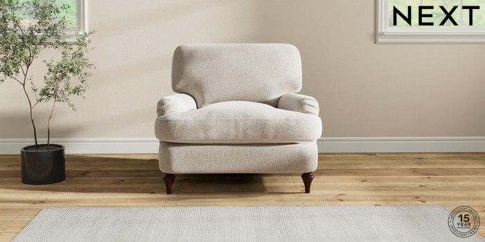 6.12.1 Buy Sadie Deep Relaxed Sit Armchair Chunky Marl Oyster High Slim Turned - Dark Brown from the Laura Ashley online shop Click here to use our website with more accessibility support, for example screen readers