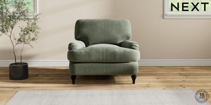 6.12.1 Buy Sadie Deep Relaxed Sit Armchair Chunky Texture Mid Forest Green High Slim Turned - Dark from the Laura Ashley online shop Click here to use our website with more accessibility support, for example screen readers