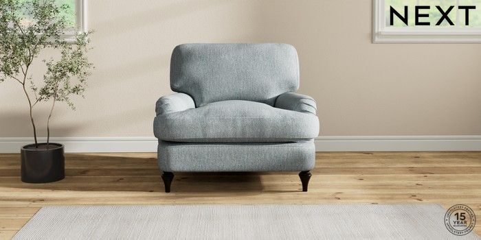 6.12.1 Buy Sadie Deep Relaxed Sit Armchair Chunky Weave Mid Blue High Slim Turned - Dark from the Laura Ashley online shop Click here to use our website with more accessibility support, for example screen readers