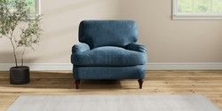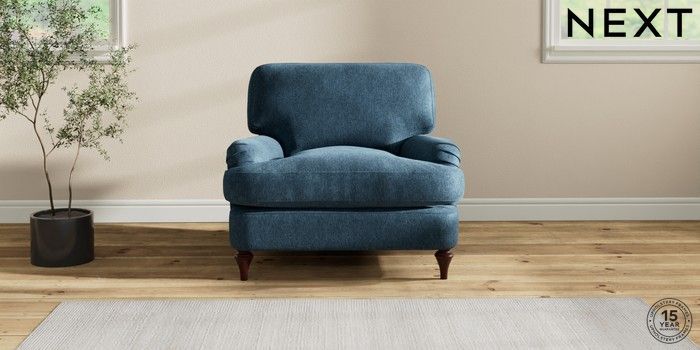 6.12.1 Buy Sadie Deep Relaxed Sit Armchair Cotswold Chenille Dark Blue High Slim Turned - Dark Brown from the Laura Ashley online shop Click here to use our website with more accessibility support, for example screen readers