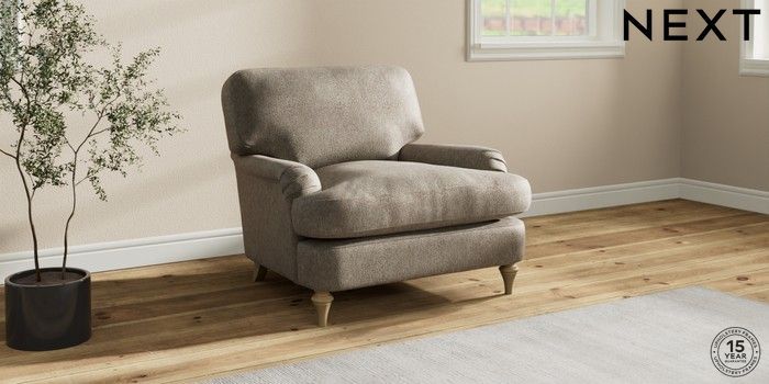 7.0.3 Buy Sadie Deep Relaxed Sit Armchair Cotswold Chenille Mid Mink Brown High Slim Turned - Light from the Laura Ashley online shop Click here to use our website with more accessibility support, for example screen readers