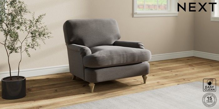 7.0.3 Buy Sadie Deep Relaxed Sit Armchair Fine Chenille Easy Clean Dark Smoke Grey High Slim Turned - Light from the Laura Ashley online shop Click here to use our website with more accessibility support, for example screen readers