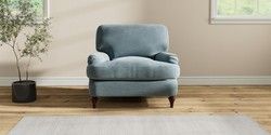 6.12.1 Buy Sadie Deep Relaxed Sit Armchair Fine Chenille Easy Clean Mid Blue High Slim Turned - Dark Brown from the Laura Ashley online shop Click here to use our website with more accessibility support, for example screen readers