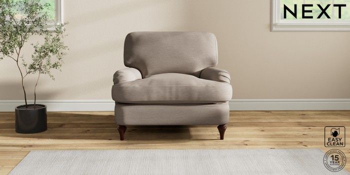 6.12.1 Buy Sadie Deep Relaxed Sit Armchair Fine Chenille Easy Clean Mid Taupe Brown High Slim Turned - Dark Brown from the Laura Ashley online shop Click here to use our website with more accessibility support, for example screen readers