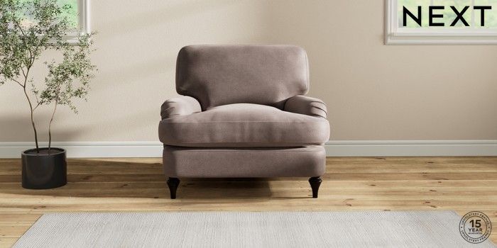 6.12.1 Buy Sadie Deep Relaxed Sit Armchair Luxe Chenille Mink Brown High Slim Turned - Dark from the Laura Ashley online shop Click here to use our website with more accessibility support, for example screen readers