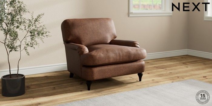 7.0.3 Buy Sadie Deep Relaxed Sit Armchair Monza Faux Leather Easy Clean Chestnut Brown High Slim Turned - Dark from the Laura Ashley online shop Click here to use our website with more accessibility support, for example screen readers
