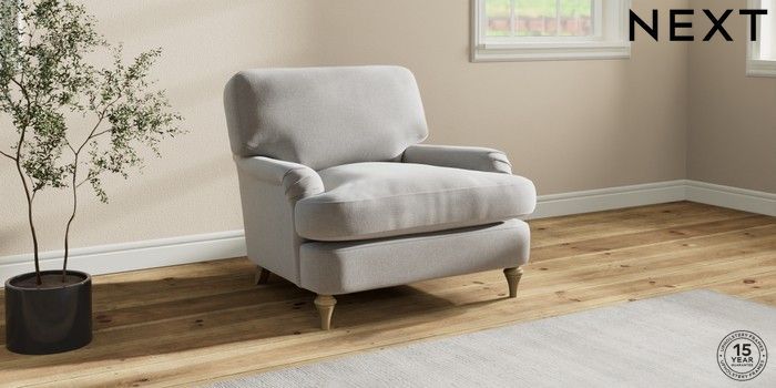 7.0.3 Buy Sadie Deep Relaxed Sit Armchair Natural Mix Light Grey High Slim Turned - Light from the Laura Ashley online shop Click here to use our website with more accessibility support, for example screen readers