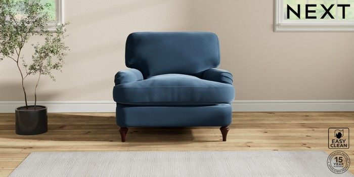 6.12.1 Buy Sadie Deep Relaxed Sit Armchair Plush Velvet Easy Clean Airforce Blue High Slim Turned - Dark Brown from the Laura Ashley online shop Click here to use our website with more accessibility support, for example screen readers