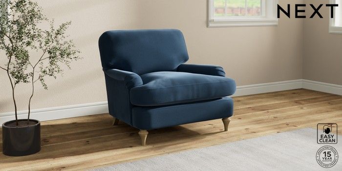 7.0.3 Buy Sadie Deep Relaxed Sit Armchair Plush Velvet Easy Clean Airforce Blue High Slim Turned - Light from the Laura Ashley online shop Click here to use our website with more accessibility support, for example screen readers