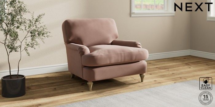 7.0.3 Buy Sadie Deep Relaxed Sit Armchair Plush Velvet Easy Clean Mid Natural High Slim Turned - Light from the Laura Ashley online shop Click here to use our website with more accessibility support, for example screen readers