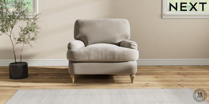 6.12.1 Buy Sadie Deep Relaxed Sit Armchair Ripple Chenille Light Natural High Slim Turned - Light from the Laura Ashley online shop Click here to use our website with more accessibility support, for example screen readers
