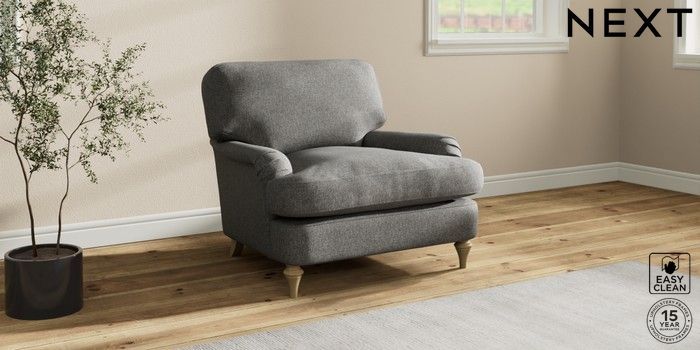 7.0.3 Buy Sadie Deep Relaxed Sit Armchair Tweedy Blend Easy Clean Dark Grey High Slim Turned - Light from the Laura Ashley online shop Click here to use our website with more accessibility support, for example screen readers