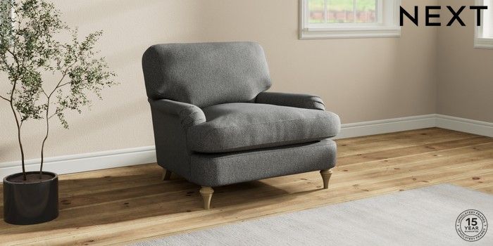 7.0.3 Buy Sadie Deep Relaxed Sit Armchair Tweedy Chenille Dark Grey High Slim Turned - Light from the Laura Ashley online shop Click here to use our website with more accessibility support, for example screen readers