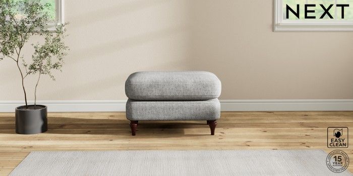6.12.1 Buy Sadie Deep Relaxed Sit Footstool Chunky Boucle Easy Clean Light Grey High Slim Turned - Dark Brown from the Laura Ashley online shop Click here to use our website with more accessibility support, for example screen readers