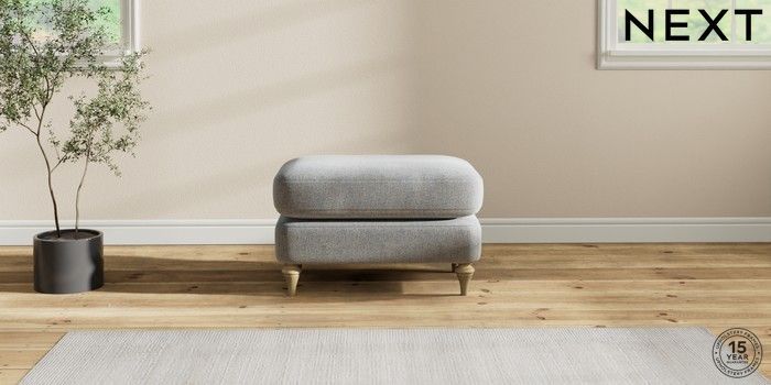 6.12.1 Buy Sadie Deep Relaxed Sit Footstool Chunky Marl Mid Grey High Slim Turned - Light from the Laura Ashley online shop Click here to use our website with more accessibility support, for example screen readers