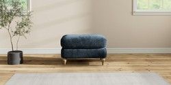 6.12.1 Buy Sadie Deep Relaxed Sit Footstool Distressed Velour Midnight Blue High Slim Turned - Light from the Laura Ashley online shop Click here to use our website with more accessibility support, for example screen readers