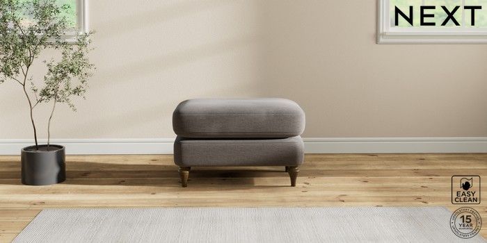 6.12.1 Buy Sadie Deep Relaxed Sit Footstool Fine Chenille Easy Clean Dark Smoke Grey High Slim Turned - Mid from the Laura Ashley online shop Click here to use our website with more accessibility support, for example screen readers