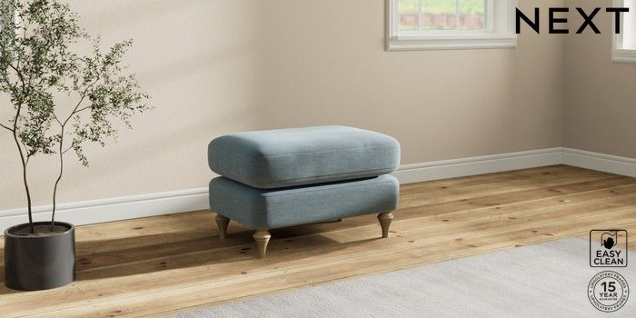 7.0.3 Buy Sadie Deep Relaxed Sit Footstool Fine Chenille Easy Clean Mid Blue High Slim Turned - Light from the Laura Ashley online shop Click here to use our website with more accessibility support, for example screen readers