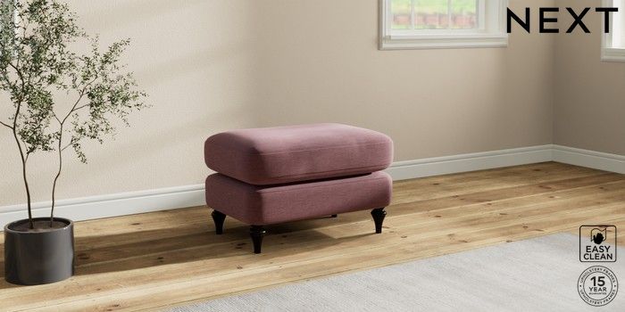 7.0.3 Buy Sadie Deep Relaxed Sit Footstool Fine Chenille Easy Clean Mid Mulberry Purple High Slim Turned - Dark from the Laura Ashley online shop Click here to use our website with more accessibility support, for example screen readers