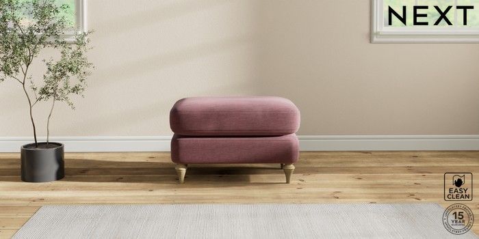 6.12.1 Buy Sadie Deep Relaxed Sit Footstool Fine Chenille Easy Clean Mid Mulberry Purple High Slim Turned - Light from the Laura Ashley online shop Click here to use our website with more accessibility support, for example screen readers