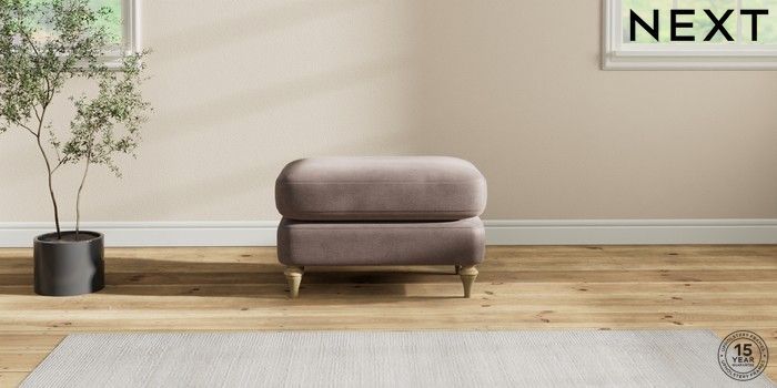 6.12.1 Buy Sadie Deep Relaxed Sit Footstool Luxe Chenille Mink Brown High Slim Turned - Light from the Laura Ashley online shop Click here to use our website with more accessibility support, for example screen readers