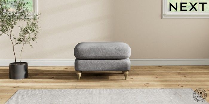 6.12.1 Buy Sadie Deep Relaxed Sit Footstool Studio Chenille Mid Grey High Slim Turned - Light from the Laura Ashley online shop Click here to use our website with more accessibility support, for example screen readers