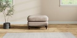 6.12.1 Buy Sadie Deep Relaxed Sit Footstool Tweedy Chenille Mid Natural High Slim Turned - Dark Brown from the Laura Ashley online shop Click here to use our website with more accessibility support, for example screen readers