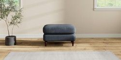 6.12.1 Buy Sadie Deep Relaxed Sit Footstool Tweedy Chenille Navy Blue High Slim Turned - Dark Brown from the Laura Ashley online shop Click here to use our website with more accessibility support, for example screen readers