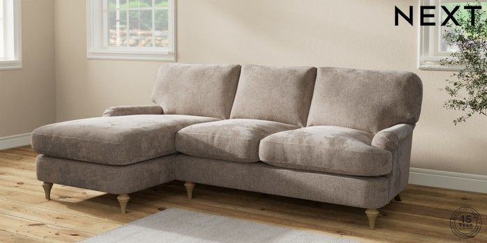 6.12.1 Buy Sadie Deep Relaxed Sit Medium Sofa Chaise - Left Hand Chunky Chenille Light Dove High Slim Turned - Light from the Laura Ashley online shop Click here to use our website with more accessibility support, for example screen readers