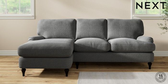 7.0.3 Buy Sadie Deep Relaxed Sit Medium Sofa Chaise - Left Hand Chunky Texture Dark Grey High Slim Turned - Dark from the Laura Ashley online shop Click here to use our website with more accessibility support, for example screen readers