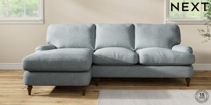 7.0.3 Buy Sadie Deep Relaxed Sit Medium Sofa Chaise - Left Hand Chunky Weave Mid Blue High Slim Turned - Mid from the Laura Ashley online shop Click here to use our website with more accessibility support, for example screen readers