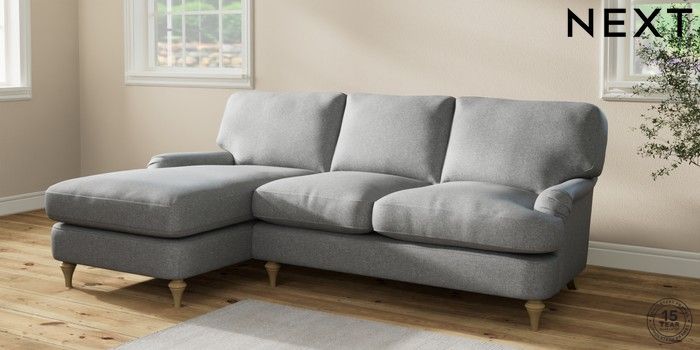 6.12.1 Buy Sadie Deep Relaxed Sit Medium Sofa Chaise - Left Hand Chunky Weave Mid Grey High Slim Turned - Light from the Laura Ashley online shop Click here to use our website with more accessibility support, for example screen readers